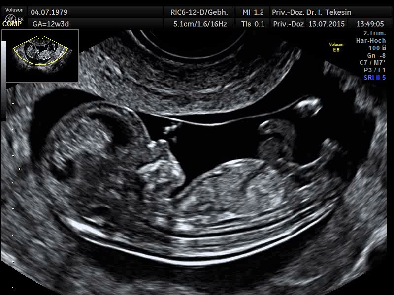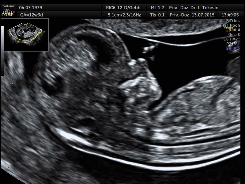 Während dieser frühen Phase der Schwangerschaft führen wir bei guten Untersuchungsbedingungen eine frühe Fehlbildungsdiagnostik durch und können bereits 40-50 % aller Fehlbildungen ausschließen. Äußere Umstände wie starke mütterliche Bauchdecken oder eine ungünstige Lage des Kindes schränken die Untersuchungsmöglichkeit jedoch trotz hoch auflösender Ultraschallgeräte ein. Optimaler Zeitpunkt für diese Diagnostik ist zwischen 12+0 und 13+6 SSW.