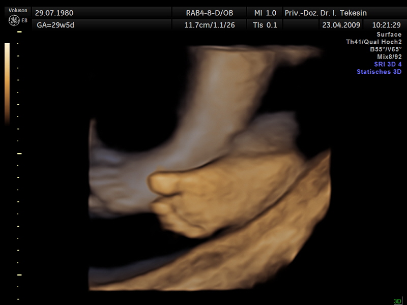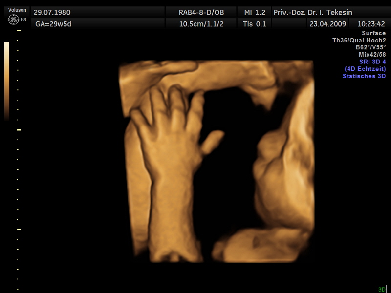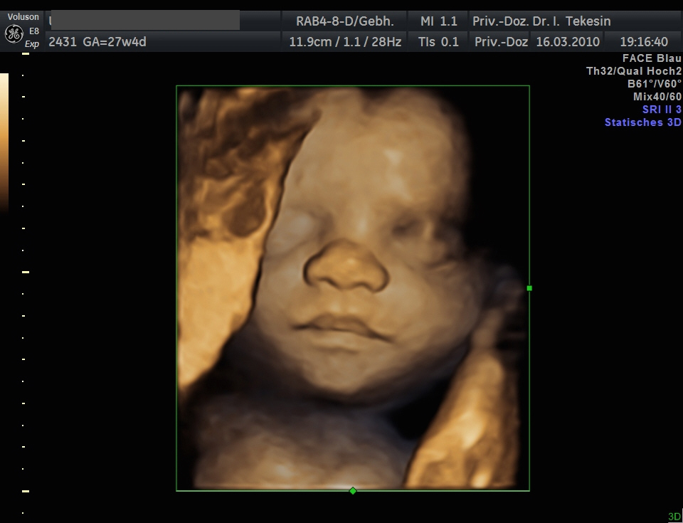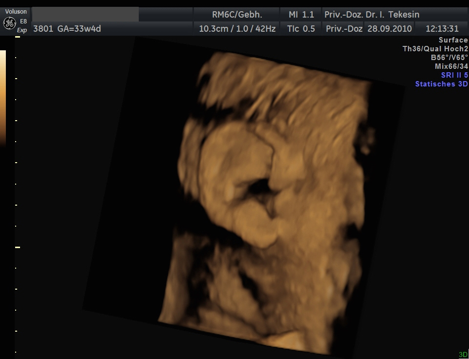 Die 3D/4D-Verfahren sind aktuell nicht im Leistungskatalog der gesetzlichen Krankenkassen im Rahmen der Mutterschaftsvorsorge verankert. Wir führen diese Darstellung nur mit einer vorherigen gezielten Fehlbildungsdiagnostik durch. Diese Zusatzdiagnostik kann bei Ihnen als selbst zu tragende Leistung durchgeführt werden.