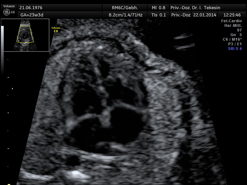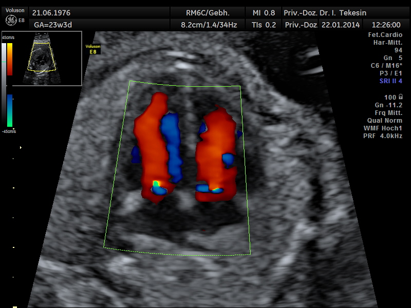 Das Ziel dieser Ultraschalluntersuchung des fetalen Herzens ist der weitest mögliche Ausschluss von angeborenen Herzfehlern. Die Voraussetzung hierfür sind eine spezielle Ausbildung und Erfahrung des Arztes in Verbindung mit der hohen Qualität des Ultraschallgerätes.