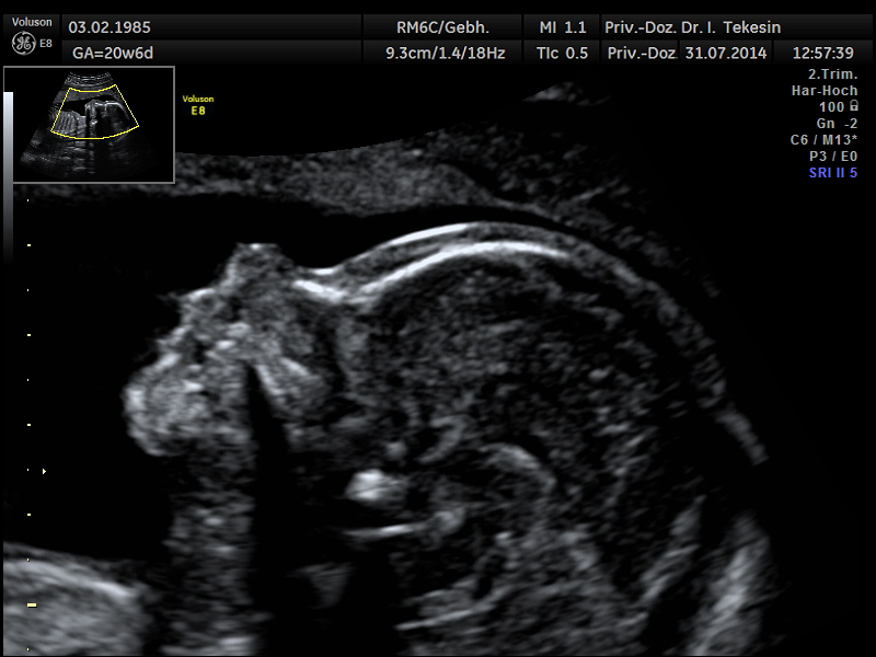 Wir sehen in diesem modernen Verfahren in erster Linie eine ergänzende Maßnahme bei speziellen Fragestellungen bezüglich Herz, Gehirn oder Skelett und vor allem bei Verdacht auf eine fetale Besonderheit.